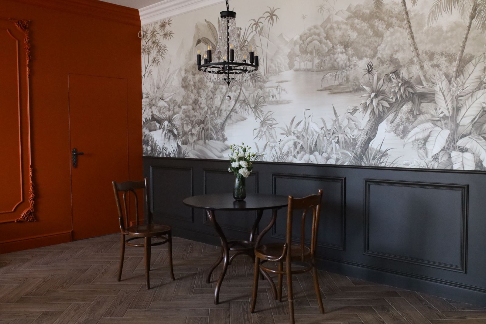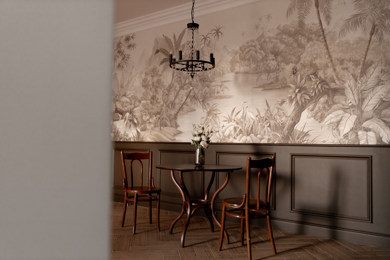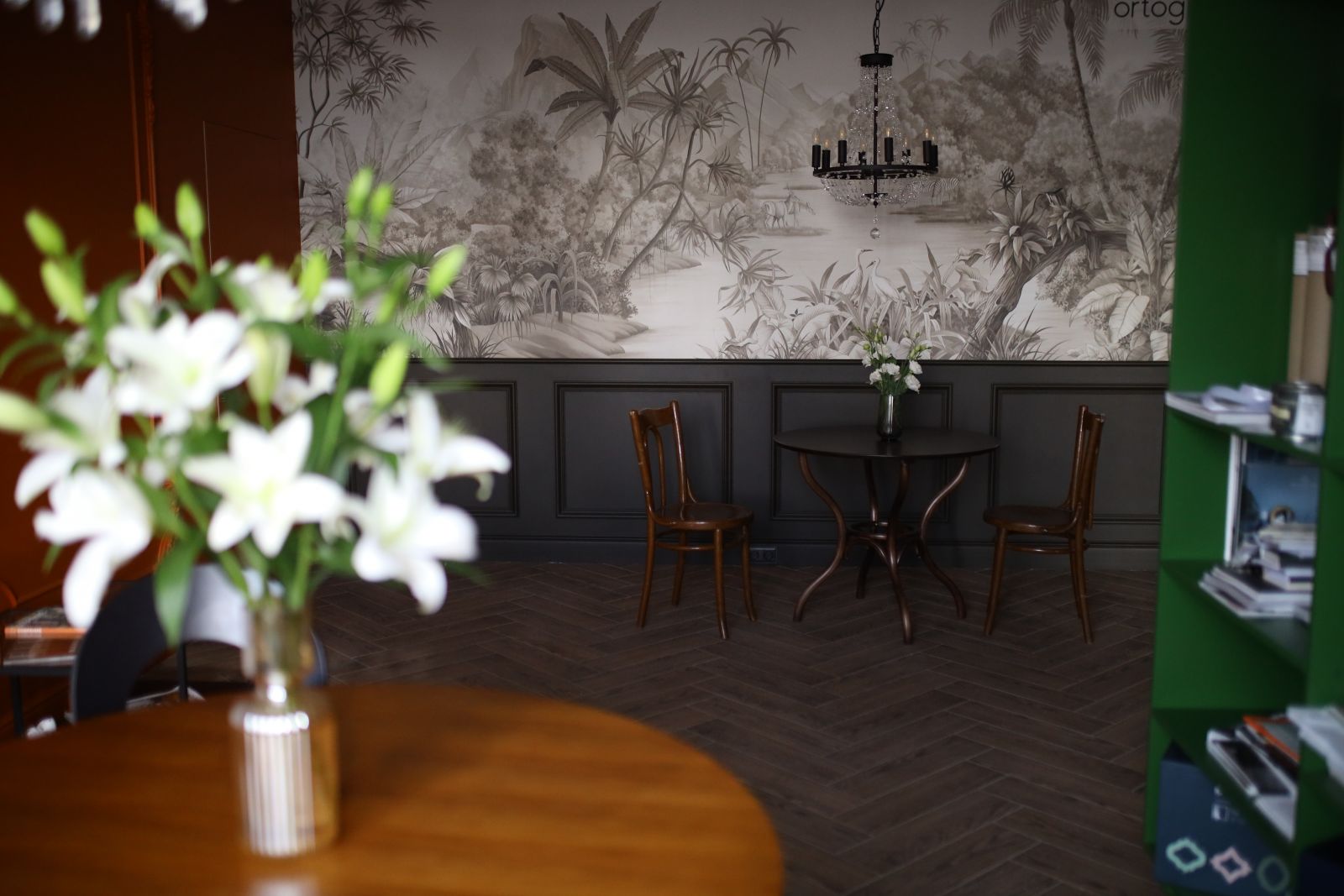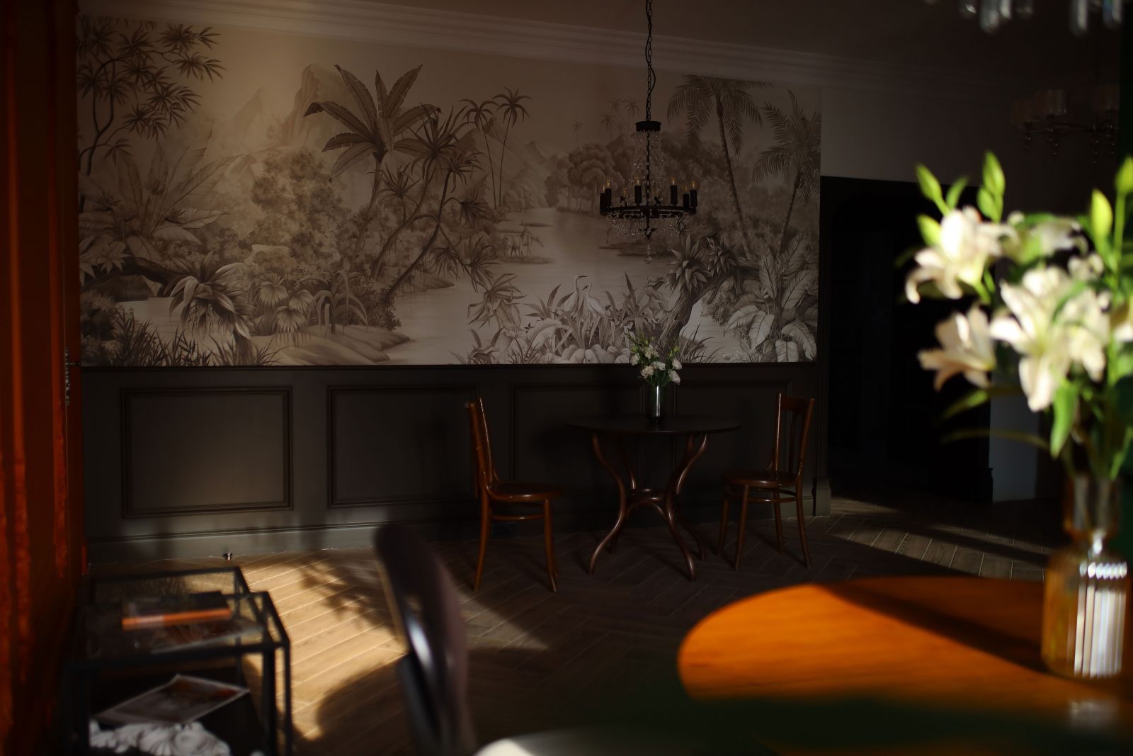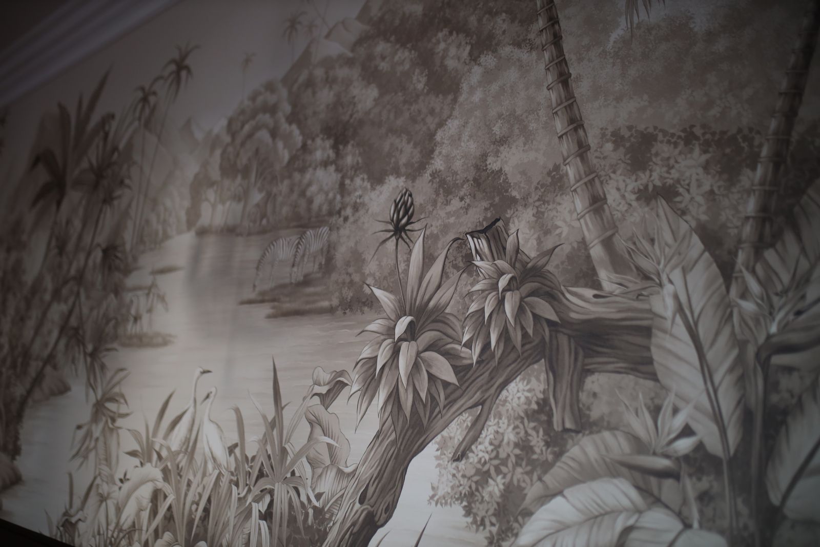 Когда речь заходит о бесшовных обоях ECO с изображением джунглей, наверняка ваше воображение рисует яркие сюжеты с пестрыми попугаями и буйной зеленью. Но джунгли могут быть и другими - более утонченными, элегантными и изысканными! Посмотрите, какой эффектный сюжет (Арт. 33665) из нашей дизайнерской коллекции «It`s Jungle» выбрали наши клиенты. Только приглушенные оттенки, графичные силуэты тропических растений и сдержанный, почти монохромный колорит. Благородные линии, тонкая игра света и тени, акварельная мягкость рисунка - все это делает интерьер по-настоящему роскошным и стильным. Мы уверены, что клиентам будет очень уютно проводить вечера, читая книгу или беседуя с близкими, в окружении этих загадочных и манящих джунглей!