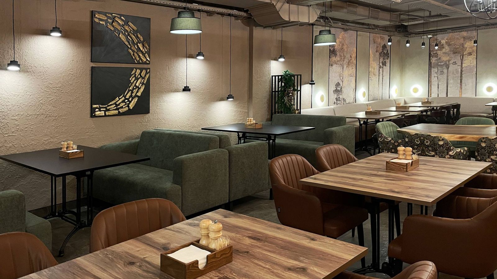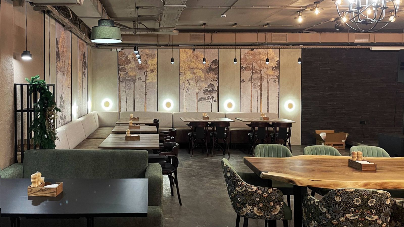Друзья, недавно мы побывали в загородном комплексе «Циолковский», который расположен в живописном уголке Самарской области. Там открылся новый ресторан «Вкус Огня», и мы очень рады, что наша экологичная продукция стала частью его интерьера. В ресторане использованы бесшовные обои ECO с изображением деревьев (Арт. 35878) - они прекрасно перекликаются с окружающей природой: свежим воздухом, сосновым лесом и ароматом хвои, что позволяет гостям полностью погрузиться в атмосферу загородного отдыха.