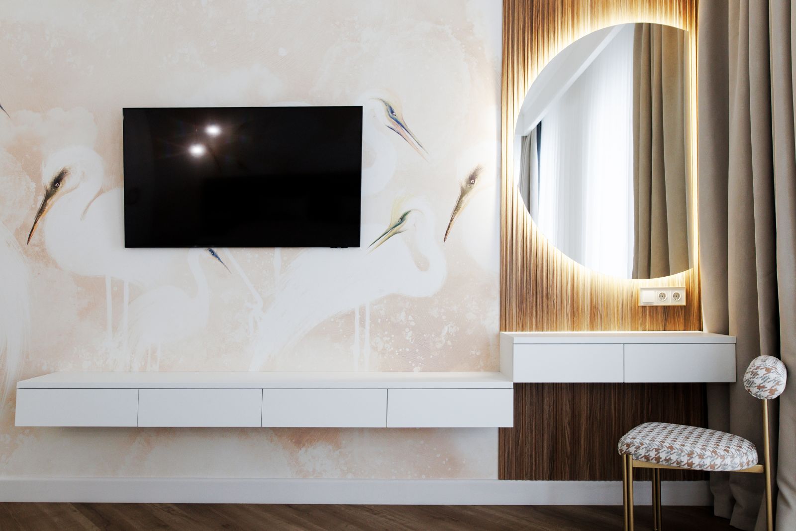 Эти грациозные птицы издревле ассоциируются с умиротворением и чистотой. Их присутствие в интерьере спальни помогает создать идеальное пространство для отдыха и восстановления сил!