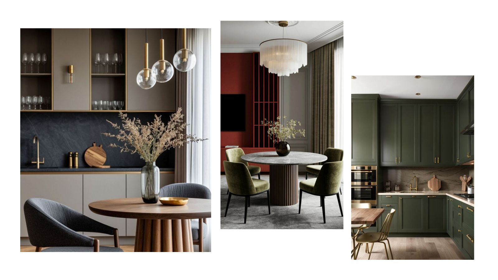 Про кухню можно сказать, что это самое творческое, «живое» и технологичное помещение. В ней хозяйки создают свои кулинарные шедевры, за столом собирается вся семья, и просто приятно и вкусно проходит время. В 2026 году основным трендом в интерьере кухни можно считать «мягкий» минимализм. Вместо ярких цветовых пятен предпочтение отдаётся максимально натуральным оттенкам: белый оникс, хаки, оливковый. Кстати, натуральный срез камня (или его качественная имитация) для столешницы и кухонного фартука очень даже актуален. Проявить смелость и творческую фантазию можно при выборе цвета для кухонных фасадов, где приветствуются акцентные гармоничные сочетания: глубокий синий с пудровым и бежевым, зелёный с насыщенным или приглушённым коричневым.