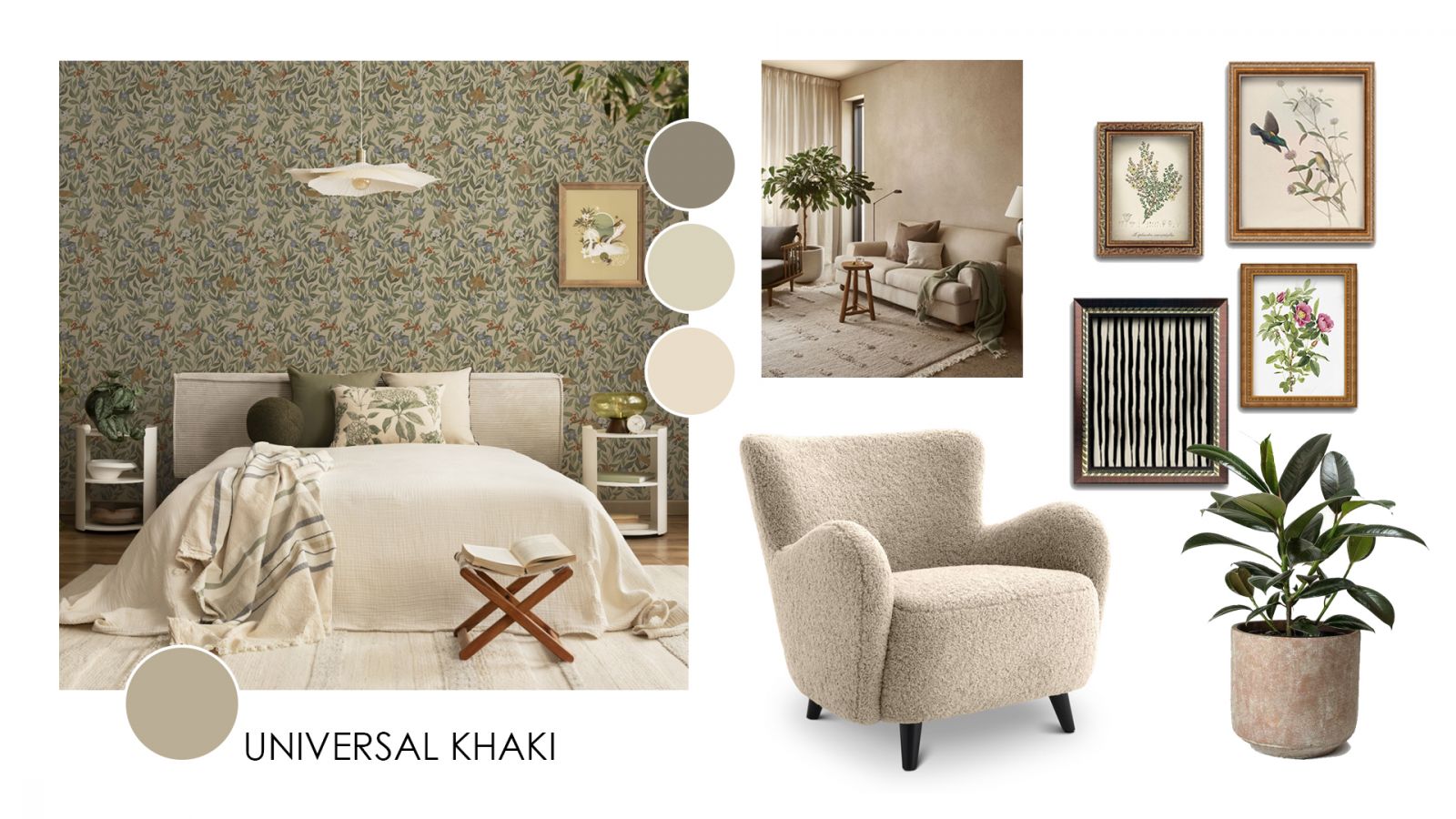 Universal Khaki — одновременно привычный нам традиционный и свежий оттенок. Тёплый и элегантный бежевый отражает классические представления, адаптированные к современной цветовой палитре. Оттенок, который заиграл по-новому, привнося новое дыхание в полюбившийся многим тон. Он выступает в качестве идеальной базы для всего цветового решения пространства, будет хорошо смотреться не только в оформлении стен, но и пола, мебели, текстиля. Кстати, авторитетная в мире интерьерного дизайна лакокрасочная компания Sherwin-Williams объявила Universal Khaki цветом 2026 года.