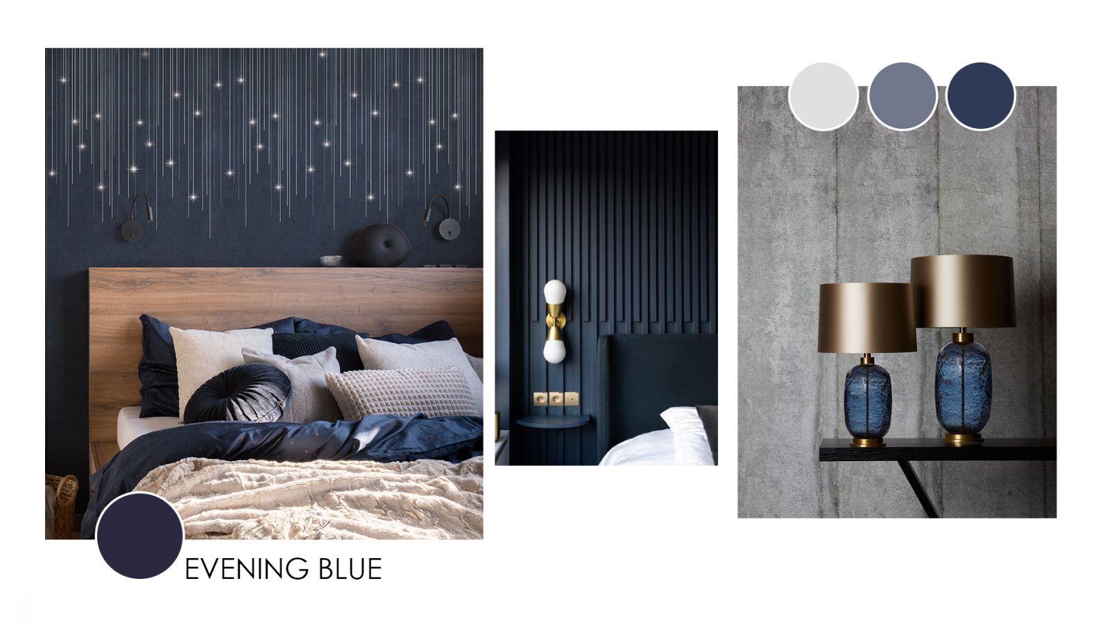 Тёмный синий цвет, символизирующий вечернее небо и морские глубины. Evening Blue стал прекрасной альтернативой строгому чёрному, сохраняя свою элегантность и универсальность. База или акценты, классический или современный интерьер – благородный тёмно-синий цвет при грамотном использовании поможет создать стильное, но в то же время уютное пространство.