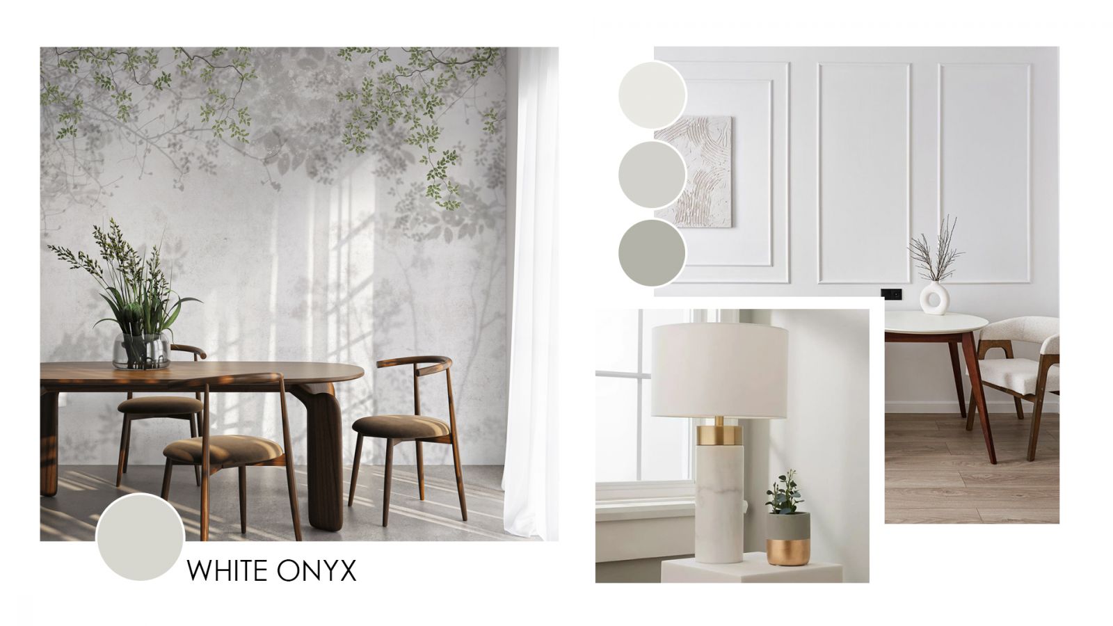 Белый оникс – идеальный нейтральный оттенок, который далёк от привычной белой стерильности. Он сложный и необычный – именно такой, каким природа создала этот необычный минерал. Позволяет наполнить пространство светом, теплом и объёмом. Этот необычный белый цвет набирает популярность не только в оформлении стен, напольных и потолочных поверхностей. Имитацию белого оникса и его натуральные срезы всё чаще используют для мебельных фасадов и при создании столешниц, кухонных фартуков. Выглядит очень роскошно и дорого.