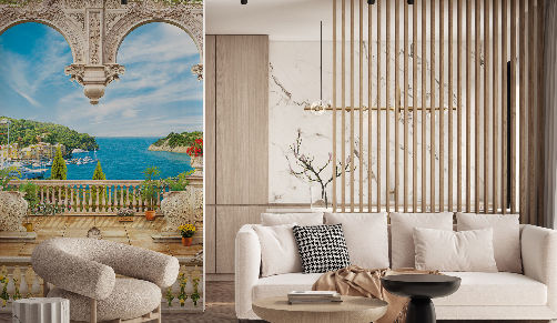 Если Вам не повезло с видом из окна, или же его просто нет, то у компании ОРТОГРАФ есть для Вас отличное решение. Коллекция изображений «Обманки» - своеобразный пространственный портал. Разместив фреску или фотообои с таким изображением на стене, Вы перенесётесь на террасы старинных замков, бальных залов, балконы с видом на лазурное море. С фресками и фотообоями от компании ОРТОГРАФ у Вас есть возможность оказаться в любом уголке мира. Вместо обыкновенной стены перед вами откроется красивейшая пространственная перспектива,  которая создаст иллюзию нахождения в другом городе, стране, континенте и времени. К тому же, изображения в таком стиле визуально увеличивают пространство помещения.