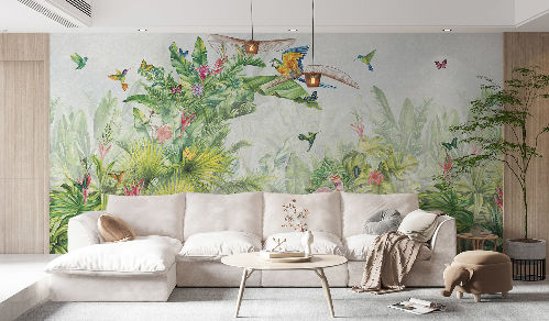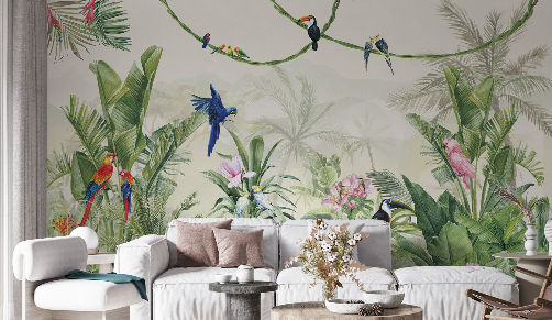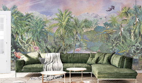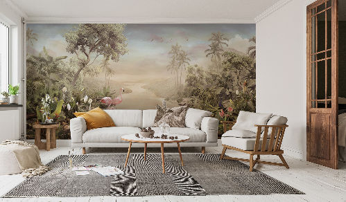 Это джунгли, прочувствуйте их настроение! В новой коллекции вы найдёте панорамные тропические сюжеты, поражающие своей глубокой «живой» перспективой, тщательной прорисовкой и цветовой гармонией. Каждый сюжет – это возможность стать ближе к дикой природе: почувствовать освежающую прохладу тенистых зарослей или палящий  полуденный зной, встречать рассветы и закаты в компании изящных фламинго, игривых попугаев и обитателей дикой фауны.