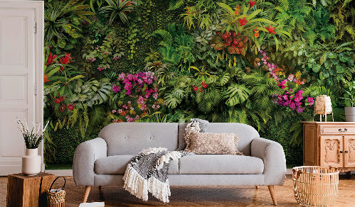 «Oasis» – именно так называется наша новая коллекция дизайнов. Только представьте, как заходя в комнату, вы попадаете в настоящую оранжерею с экзотическими растениями, глухие дебри джунглей, переноситесь в мифические висячие вавилонские сады.